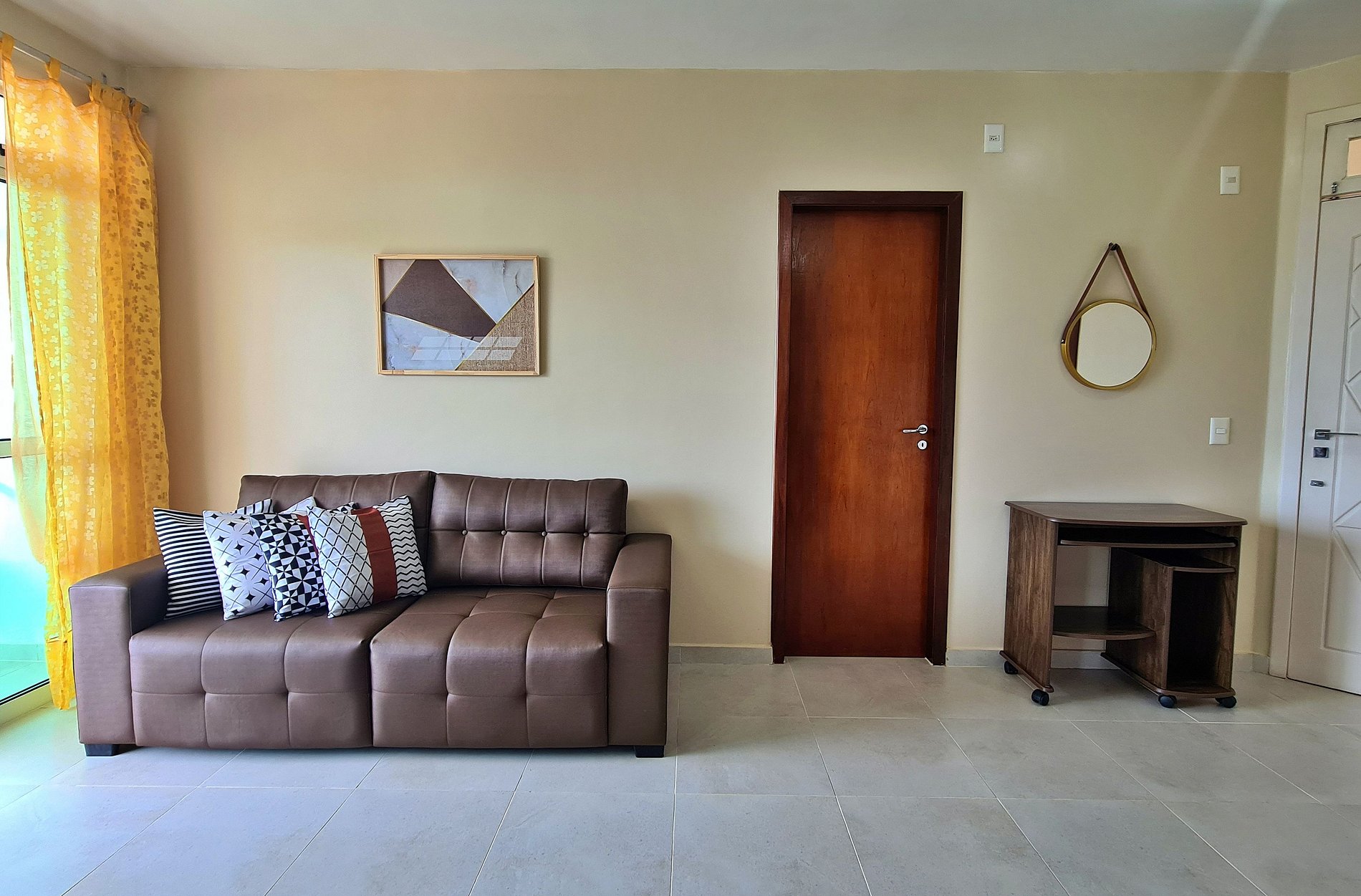O apartamento localizado no Cond. San Giacomo é ideal para famílias e amigos, acomoda confortavelmente quatro pessoas (mas é permitido até quatro pessoas). Possui sala com a cozinha integrada (itens necessários para sua estadia), dois quartos (sendo uma suíte) com ar-condicionado, banheiro social e uma varanda em direção ao mar. O imóvel fica em direção ao mar tendo uma ótima ventilação natural, banheiros com água quente, secador, oferecemos roupa de cama e toalhas; e TV smart.