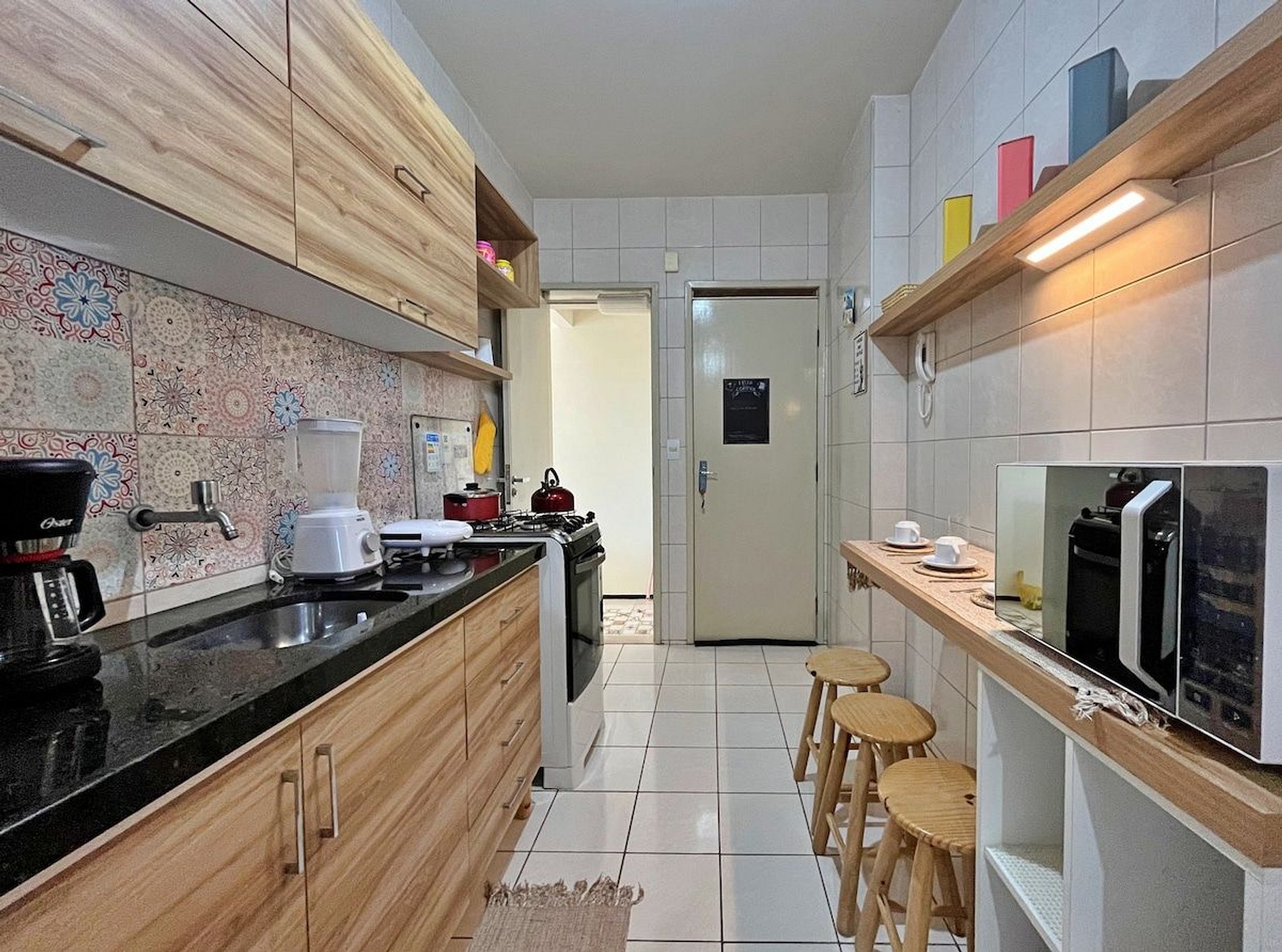 O apartamento inteiro para os hóspedes e uso da área comum do condomínio.